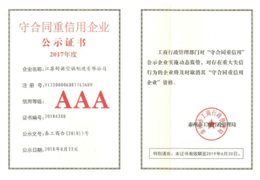 2018年泰州市工商行政管理局授予舒源空调(http://www.js-sykt.com/)“守合同重信用企业”公示证书