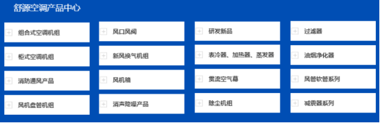专注于用户,就要做好一站式服务。舒源空调(http://www.js-sykt.com/)除了在空调机组和消防排烟产品上下功夫,还在很多细分配件领域上下苦工,生产风口、风阀、风机箱、表冷器、过滤器等等,既节约了成本又让舒源的产品更加丰富。