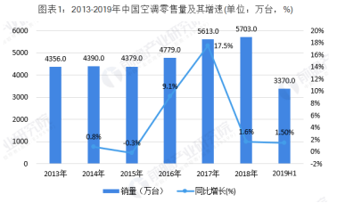 一、空调行业在经历了2016-2018三年的高速增长后,2019已然出现颓势,虽然行业内还有知名人物发声:空调制造业没有天花板!但是数据告诉我们:仅是2019年上半年,国内家用空调零售额1137亿元,同比就下降了1.4%,第三季度旺季的增速也有限,仅为个位数。线上线下的打通导致信息高度透明,物流和支付的快速便捷倒逼厂商跟上时代。