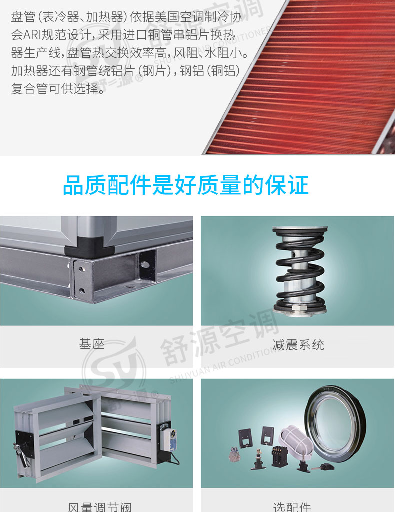 江苏舒源空调制造有限公司生产“舒源”牌组合式空调机组、柜式空调机组、风机盘管和各种规格通风配件、自动控制柜、空气净化及防火阀消声类产品,亦承接空调通风工程、净化工程的设计、制作安装业务,并可根据用户需要设计制造非标产品。