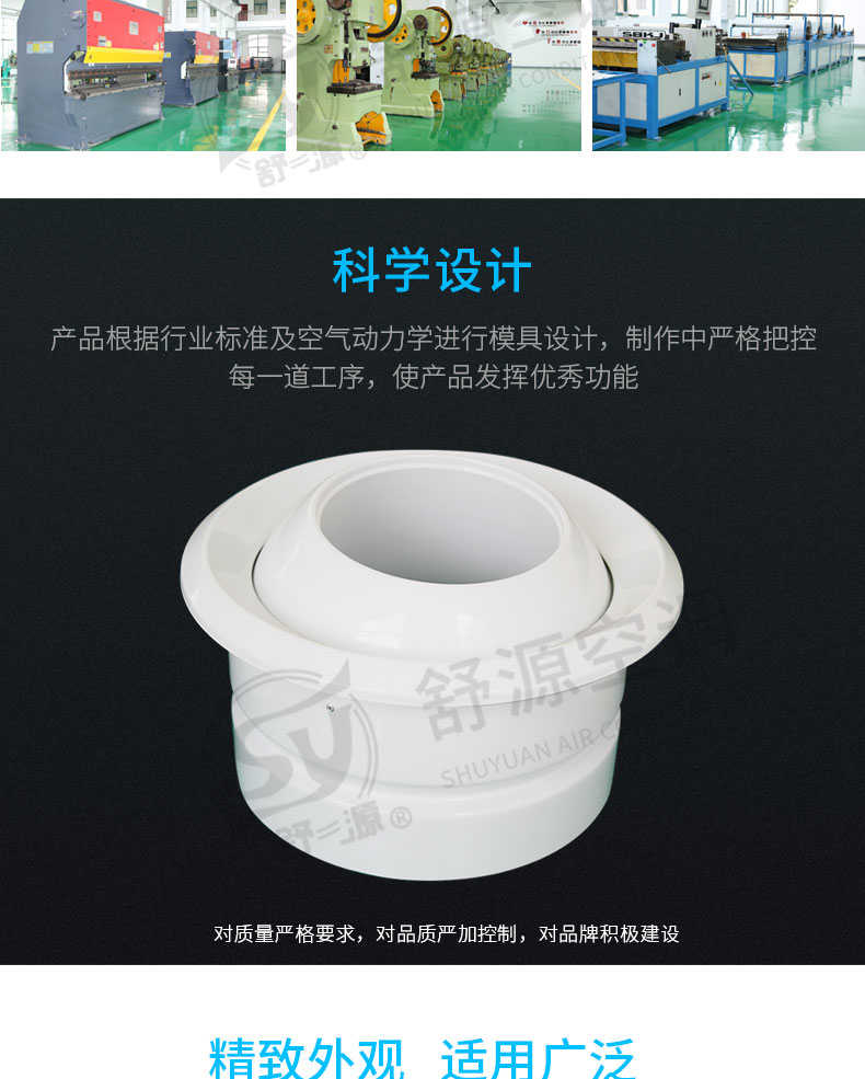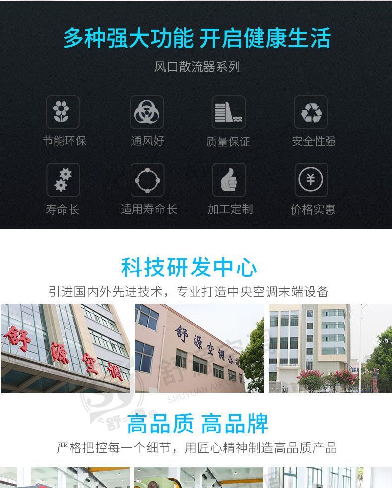 江苏舒源空调制造有限公司生产“舒源”牌组合式空调机组、柜式空调机组、风机盘管和各种规格通风配件、自动控制柜、空气净化及防火阀消声类产品,亦承接空调通风工程、净化工程的设计、制作安装业务,并可根据用户需要设计制造非标产品。