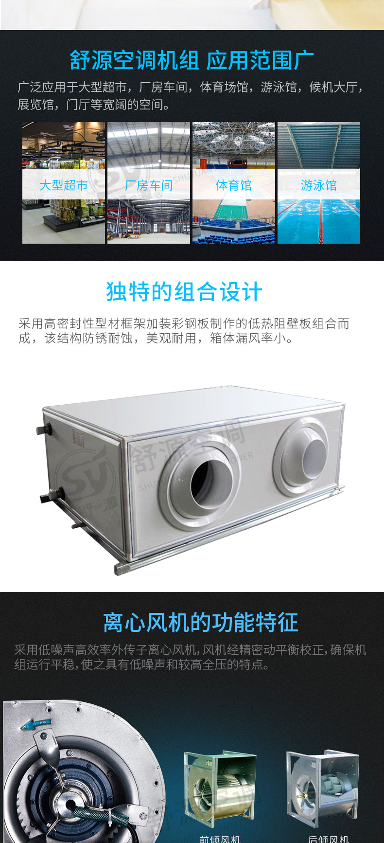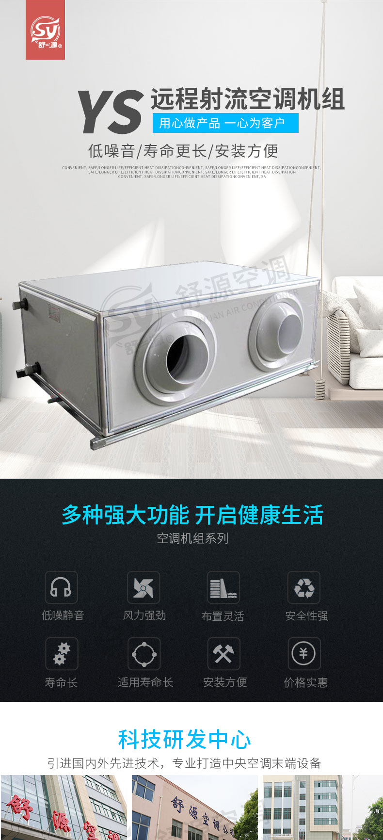 江苏舒源空调制造有限公司生产“舒源”牌组合式空调机组、柜式空调机组、风机盘管和各种规格通风配件、自动控制柜、空气净化及防火阀消声类产品,亦承接空调通风工程、净化工程的设计、制作安装业务,并可根据用户需要设计制造非标产品。