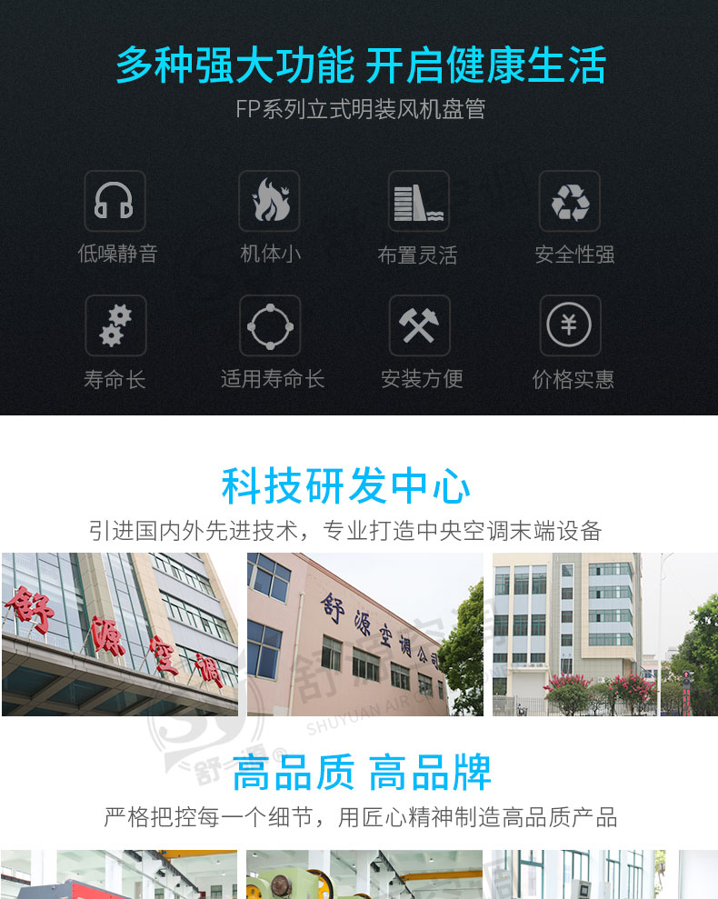 江苏舒源空调制造有限公司生产“舒源”牌组合式空调机组、柜式空调机组、风机盘管和各种规格通风配件、自动控制柜、空气净化及防火阀消声类产品,亦承接空调通风工程、净化工程的设计、制作安装业务,并可根据用户需要设计制造非标产品。
