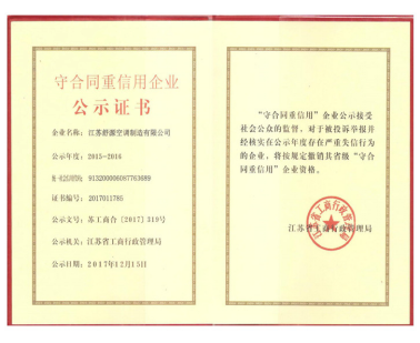 2015年江苏省工商行政管理局授予舒源空调(http://www.js-sykt.com/)“守合同重信用企业”公示证书