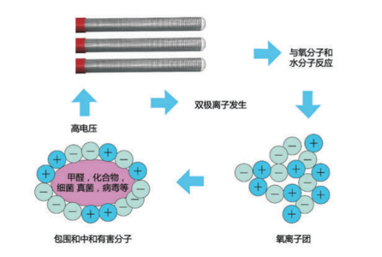 离子可有效杀灭细菌和分解TVOC等有害气体;