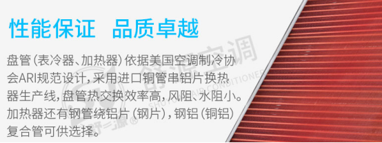 表冷段:舒源空调表冷器(http://www.js-sykt.com/)采用镀锌板材质,耐腐蚀,表面处理不易生锈,使用寿命长;采用优质薄壁铜管穿双桥面优质铝翅片,具有传热效率高,水阻力小。具有结构紧凑、重量轻、工艺先进、性能好、阻力低、承受压力高等优点。