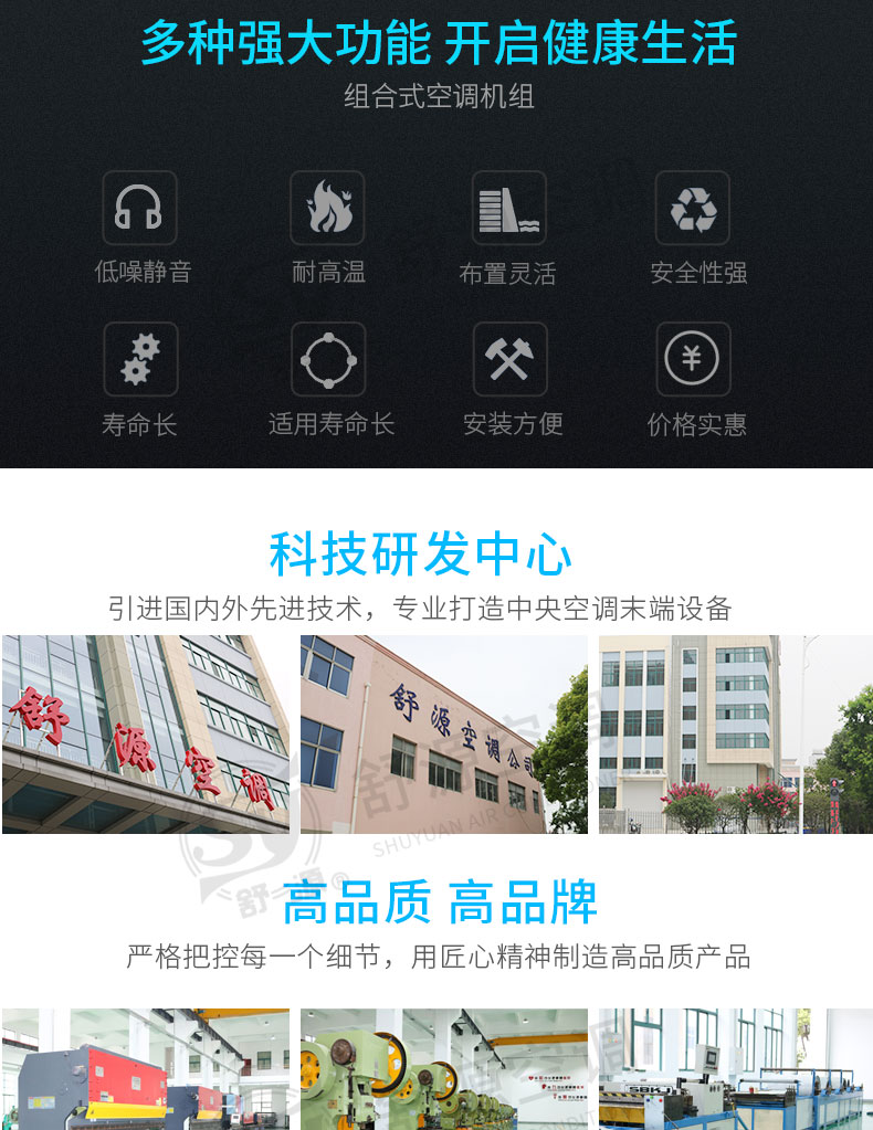 江苏舒源空调制造有限公司生产“舒源”牌组合式空调机组、柜式空调机组、风机盘管和各种规格通风配件、自动控制柜、空气净化及防火阀消声类产品,亦承接空调通风工程、净化工程的设计、制作安装业务,并可根据用户需要设计制造非标产品。